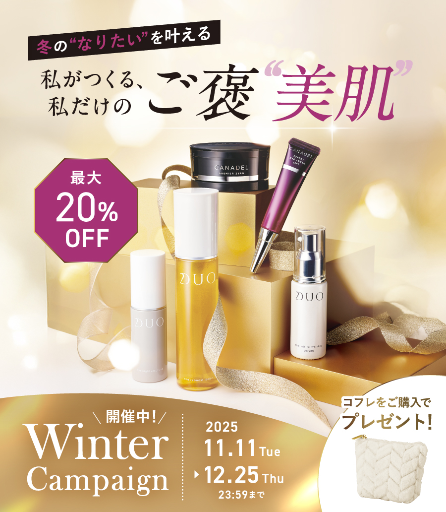 そんな出会いにポジティブな 大人の女性のブランド、CANADEL(カナデル)。 確かなエビデンスに支えられた、こだわりの成分で、 素肌に、生き方に、次々と驚きのアプローチを仕掛けていきます。
